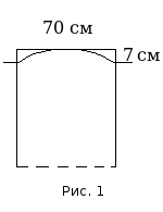 - Ткань складываем необработанными срезами друг к другу. От краев отмеряем по 68 см, по намеченным точкам рисуем полукруг. Отрезаем оба среза по намеченной линии. Это заготовка для самого «кармана» (шов будет под попой у ребенка). (Рис. 1)